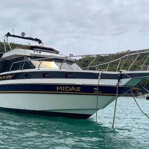 Incluso água, gelo, carvão (preparamos o seu churrasco à bordo), combustível e marinheiro habilitado.